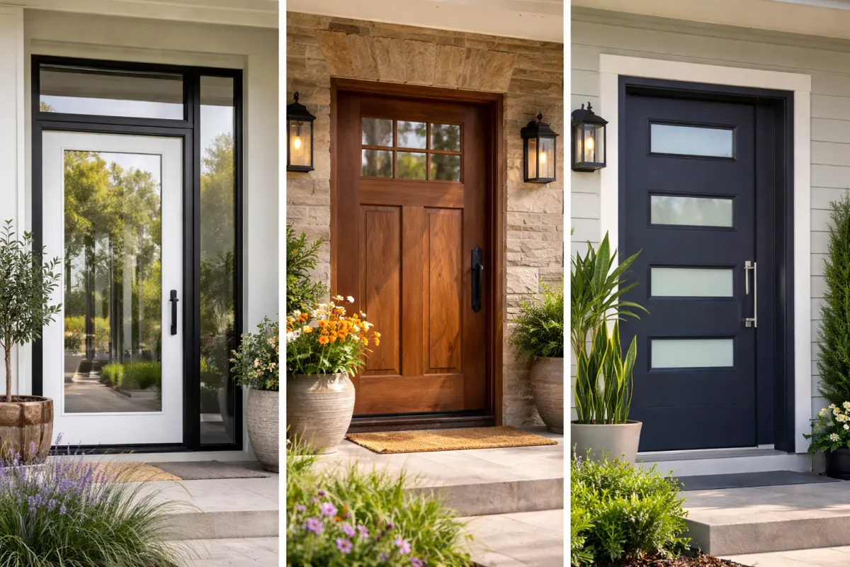 Fiberglass is the modern workhorse — low maintenance, high performance, excellent insulation, and it genuinely mimics the look of wood at a fraction of the upkeep. Steel is the security and value play — affordable, durable, and great for modern aesthetics. Real wood is for buyers who want authenticity, character, and a door that tells a story — and are willing to maintain it properly over time.