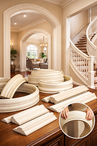 EL & EL manufactures Valuflex™ on their own premises to provide the highest quality urethane in today's market — it can be used for most interior profiles and carries a limited 5-year warranty against cracking or splitting on interior applications. Most profiles in EL & EL's catalog are available in flexible moulding, with lead times averaging 2–5 days from the date of order. This is the go-to solution for curved walls, arched doorways, round rooms, and any application where a rigid moulding simply won't work.